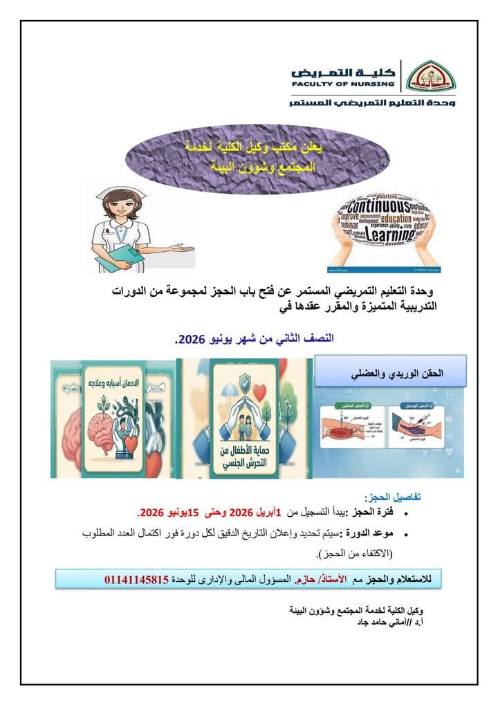عقد دورة بوحدة التعليم التمريضي المستمر - جامعة الزقازيق  يوم الأربعاء الموافق 26/ ٦/ ٢٠١٩